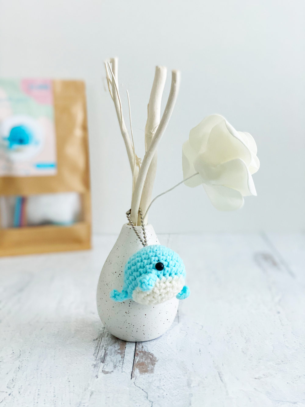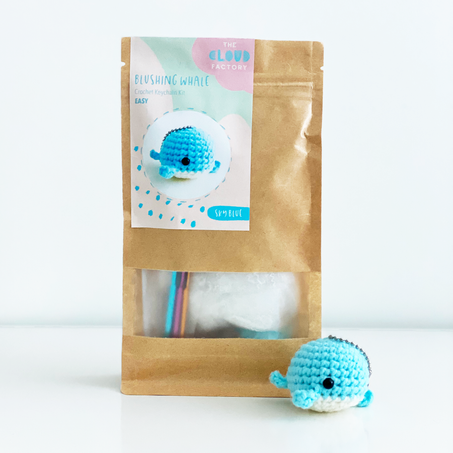 Blushy the whale keychain-making kit! Hang this little guy on your backpack, keys, or wallet! The finished keychain or kit itself both make fantastic gifts.