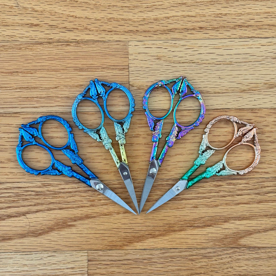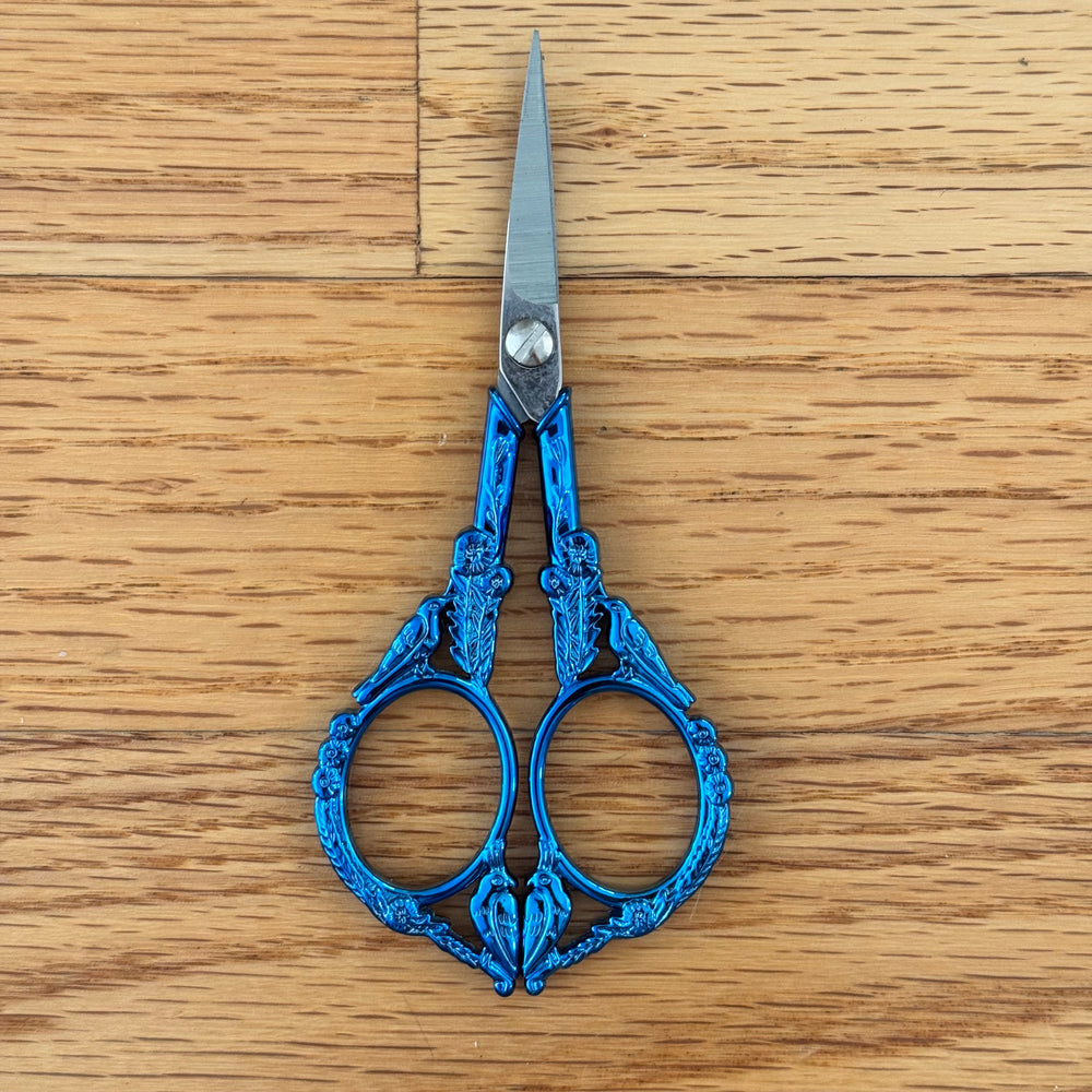Small, colorful sewing scissors featuring a delicate design with birds are perfect for various needlework uses such as: embroidery, cross stitch, sewing, quilting, crochet, knitting and more. Length: 4.5” Sharp tips Perfect addition to any maker’s scissor collection!