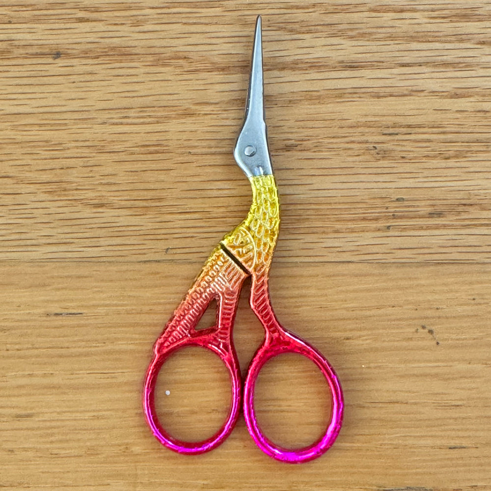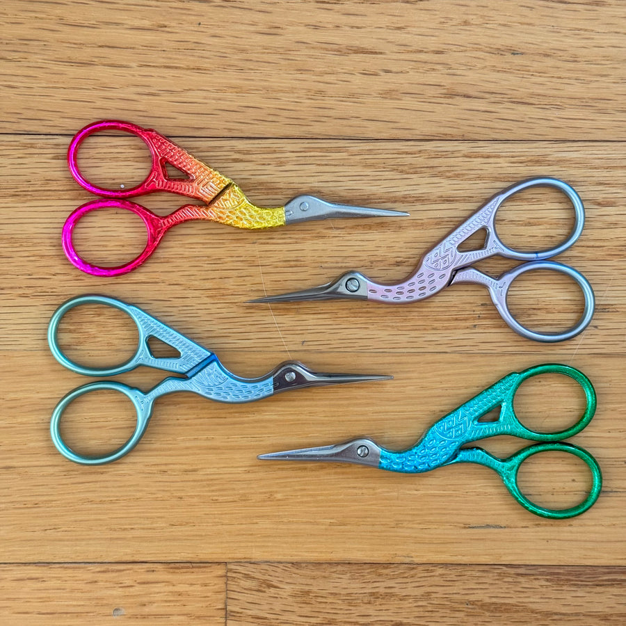 Small, colorful sewing scissors featuring a popular crane design are perfect for various needlework uses such as: embroidery, cross stitch, sewing, quilting, crochet, knitting and more. Length: 3.5” Sharp tips Perfect addition to any maker’s scissor collection!
