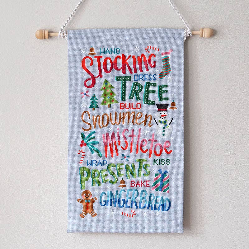 Decorate your home at Christmas with this modern typography cross stitch kit or pattern!