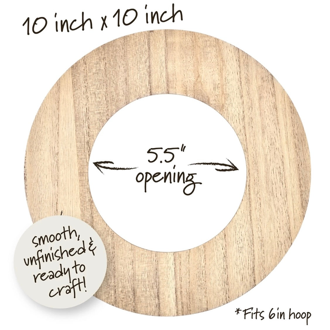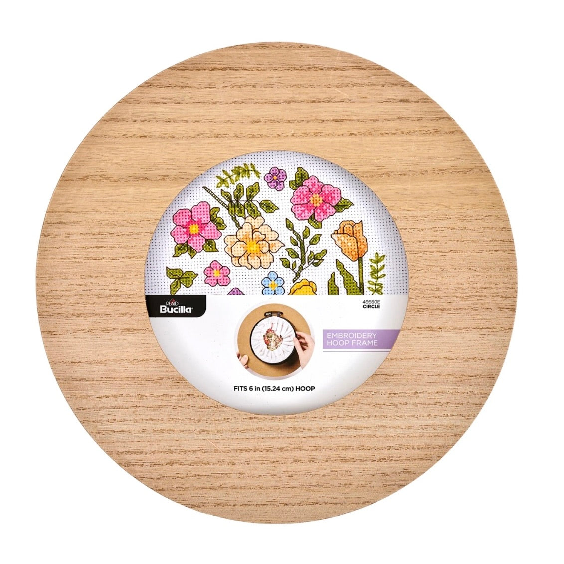 Display your favorite Embroidery Hoops in this circle wood frame. This hoop frame has a wood veneer finish that is perfect for showcasing your embroidery hoop projects. This natural wood grain veneer finish is perfect for painting, decoupaging, and more! Decorate and give it to a friend or paint together as a family. This 10” x 10” frame is perfect for displaying your favorite 6” embroidery hoop! Add the 6” Wood Hoop Frame to your crafting surfaces for a unique touch to your wood creations.