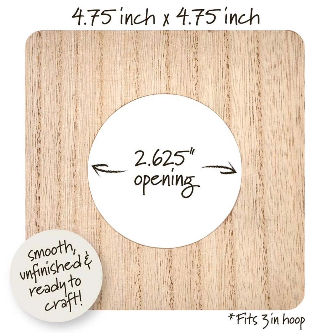 Display your favorite Embroidery Hoops in this square wood frame. This hoop frame has a wood veneer finish that is perfect for showcasing your embroidery hoop projects. This versatile Hoop Frame is fun to decorate and to accent your home decor. Decorate and give to a friend or paint together as a family. Enjoy this 4.75” x 4.75” frame - perfect for displaying your favorite 3” embroidery hoop! Add the 3” Wood Hoop Frame to your crafting surfaces for a unique touch to your wood creations.