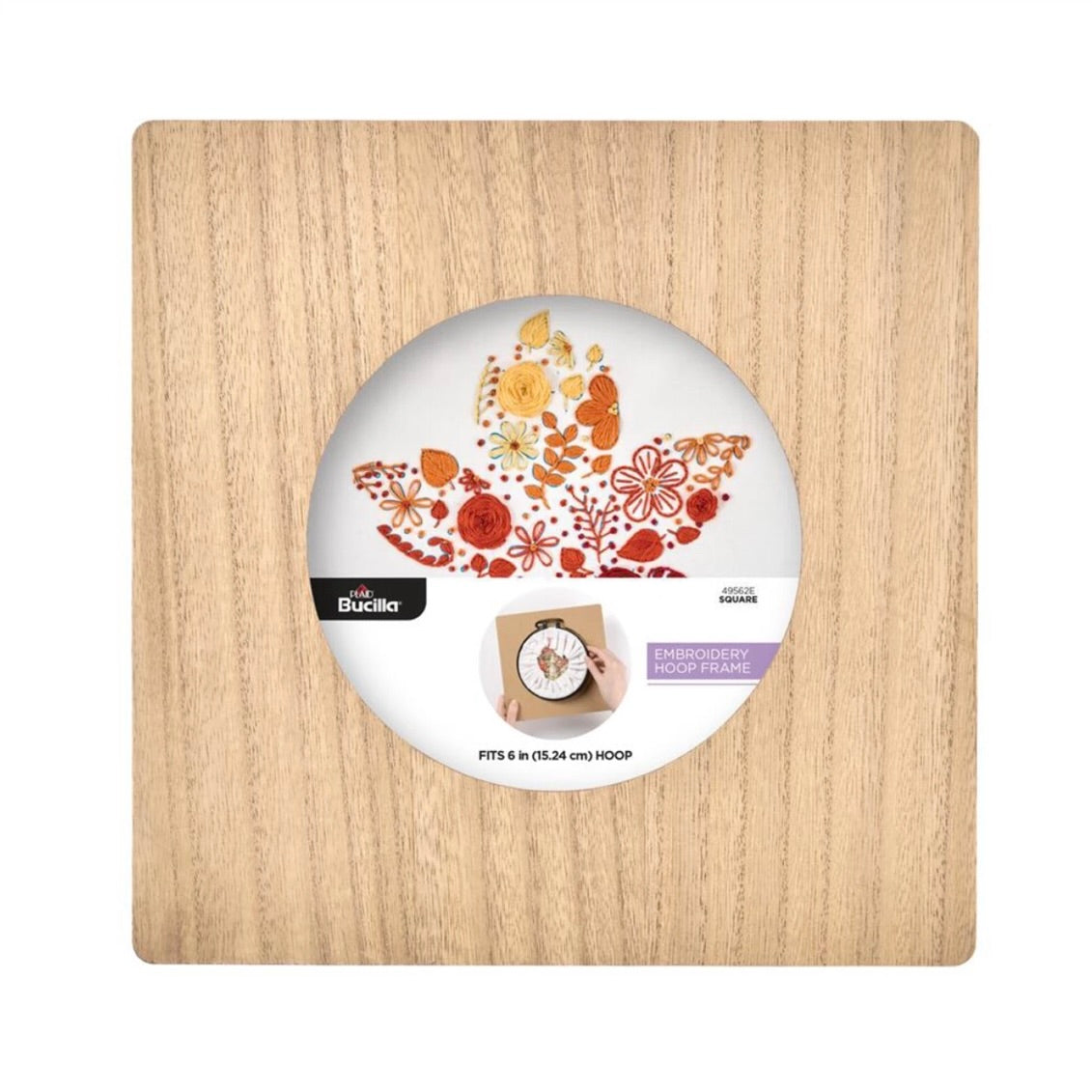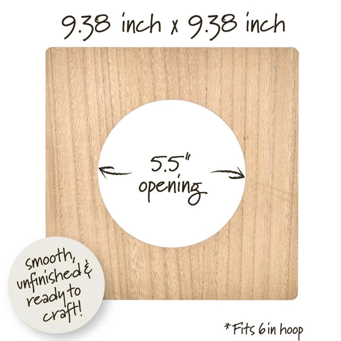 Display your favorite Embroidery Hoops in this square wood frame. This hoop frame has a wood veneer finish that is perfect for showcasing your embroidery hoop projects. This natural wood grain veneer finish is perfect for painting, decoupaging, and more! Decorate and give it to a friend or paint together as a family. This 9.5” x 9.5” frame is perfect for displaying your favorite 6” embroidery hoop! Add the 6” Wood Hoop Frame to your crafting surfaces for a unique touch to your wood creations.