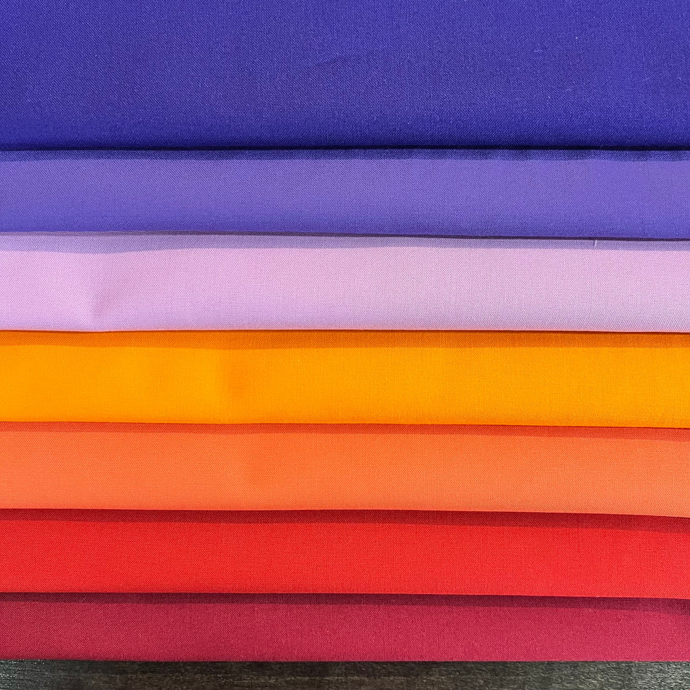 Uniquely curated bundles of Kona Cotton solids. Each bundle contains 7 different colors. Bundles are available in fat quarters, half yards, and one yard cuts.