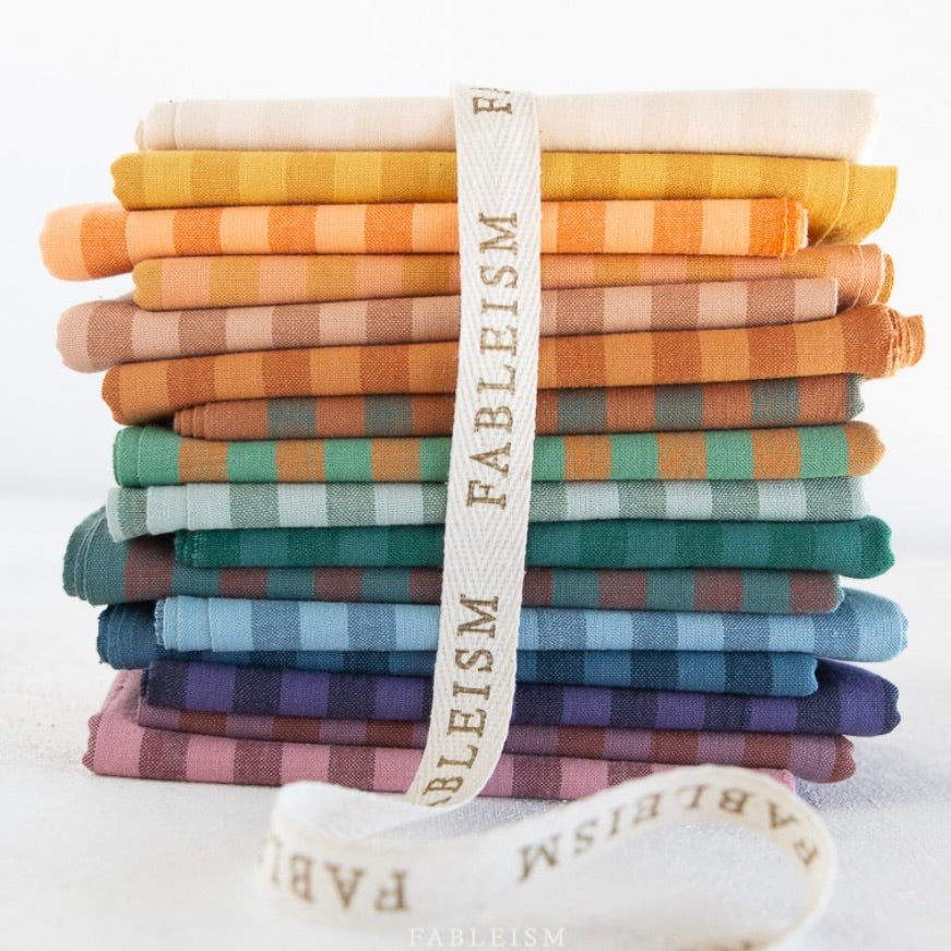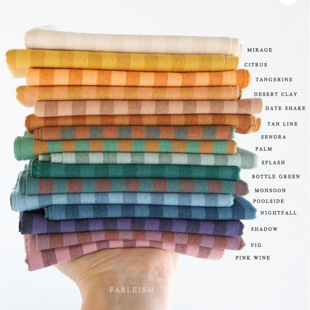Meet Sun Stripes! Our latest two color cotton striped fabric collection featuring an array of dazzling colors plucked from our earthy palette. These 3/8th inch stripes are the perfect quilt binding or they are absolutely gorgeous blended together for a quilt top, and even on their own. Stripe runs along the length (or selvedge) of the fabric. We love a good stripe! 16 colors total to pick from!
