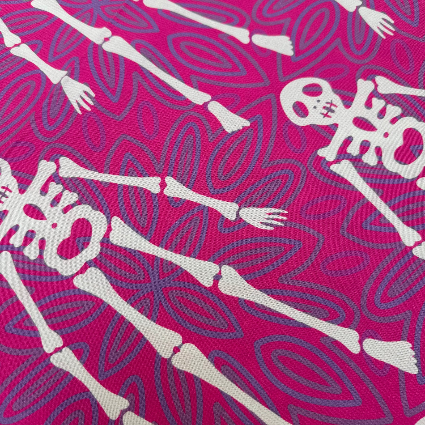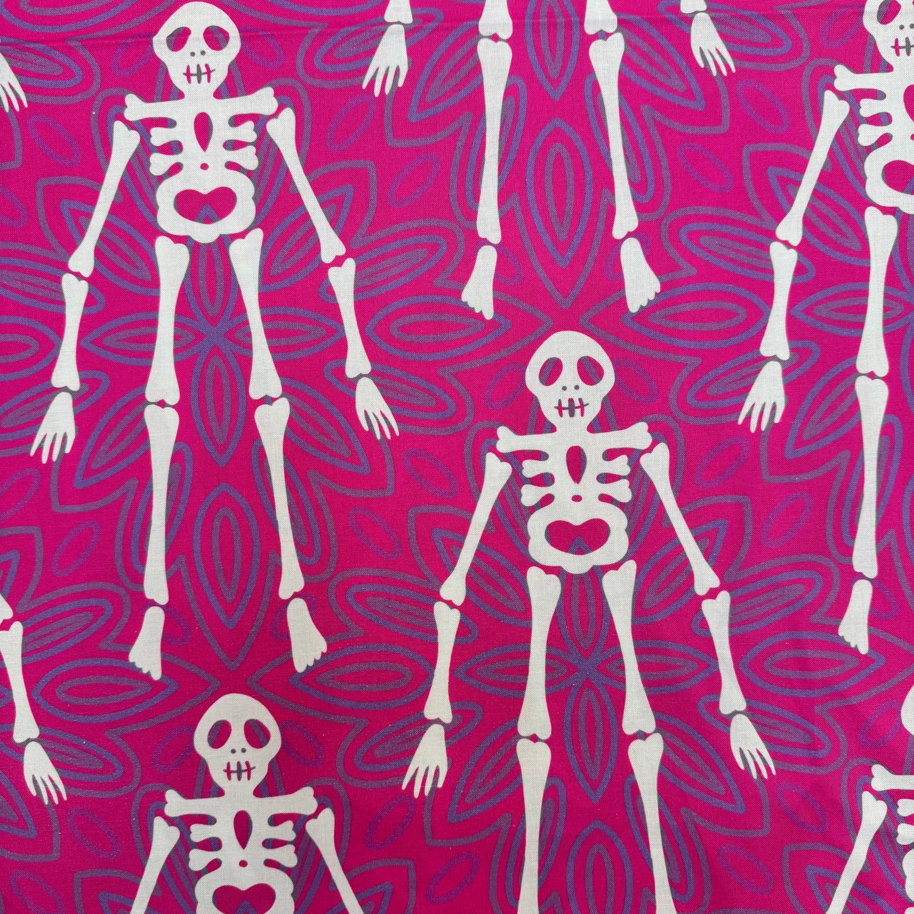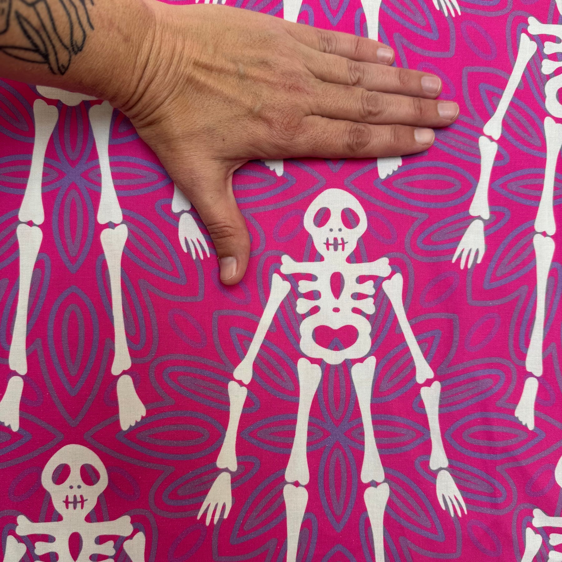 Fabric printed with my original skeleton design. Fabric is approximately 56" wide. Fabric is sold in 1/2, 1 and 2 yard quantities.