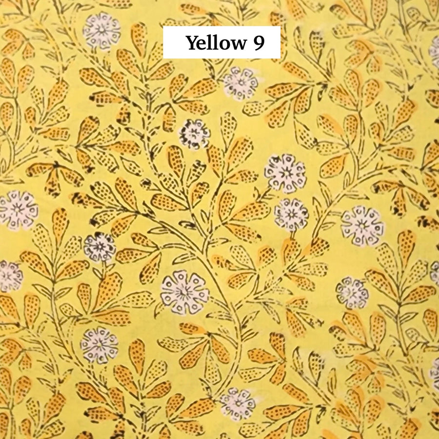 Block Printed Indian Cotton Fabric by the 1/4 Yard - Yellow 9