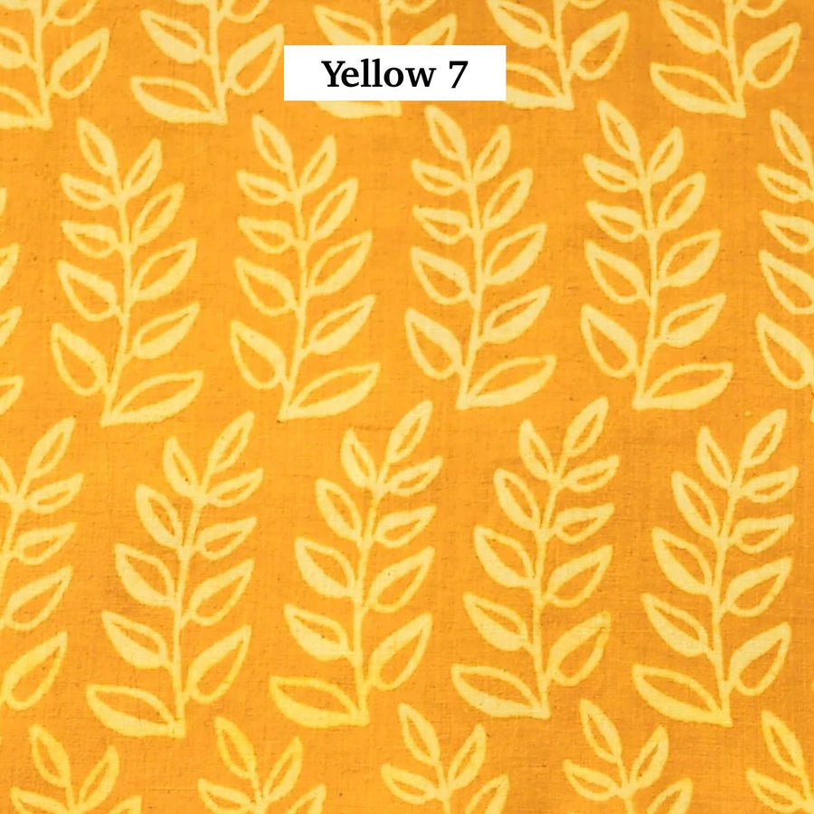 Block Printed Indian Cotton Fabric by the 1/4 Yard - Yellow 7