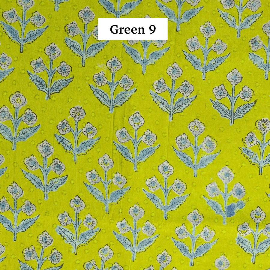 Block Printed Indian Cotton Fabric by the 1/4 Yard - Green 9