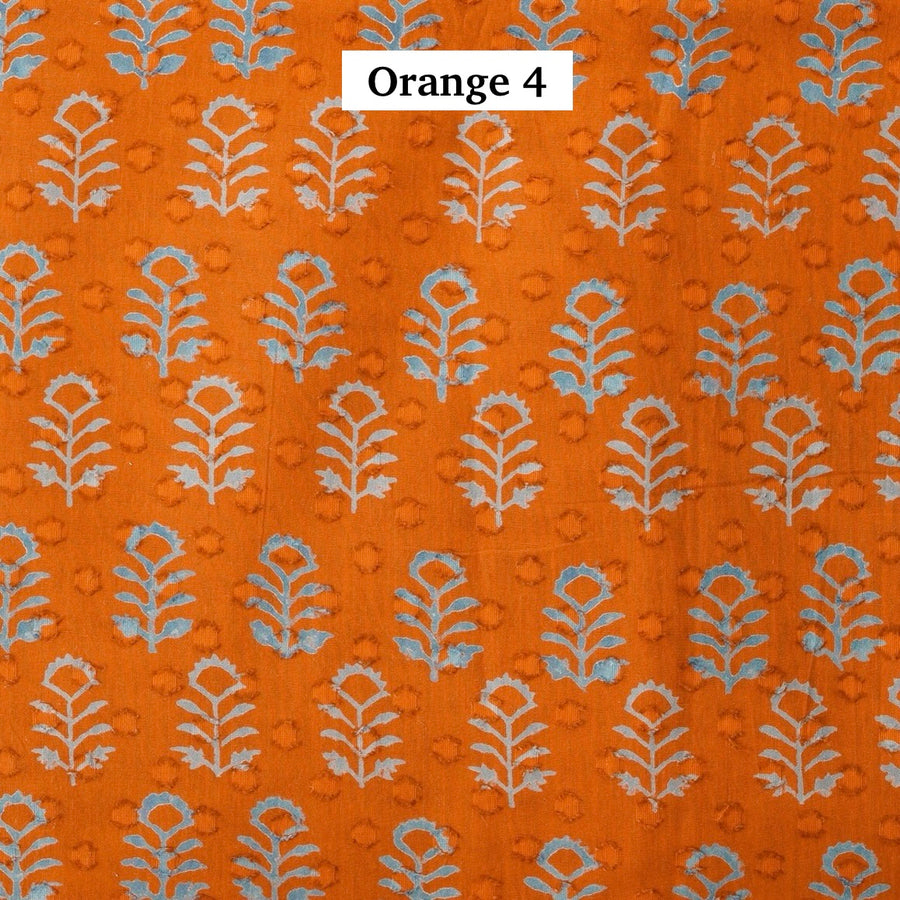 Block Printed Indian Cotton Fabric by the 1/4 Yard - Orange 4