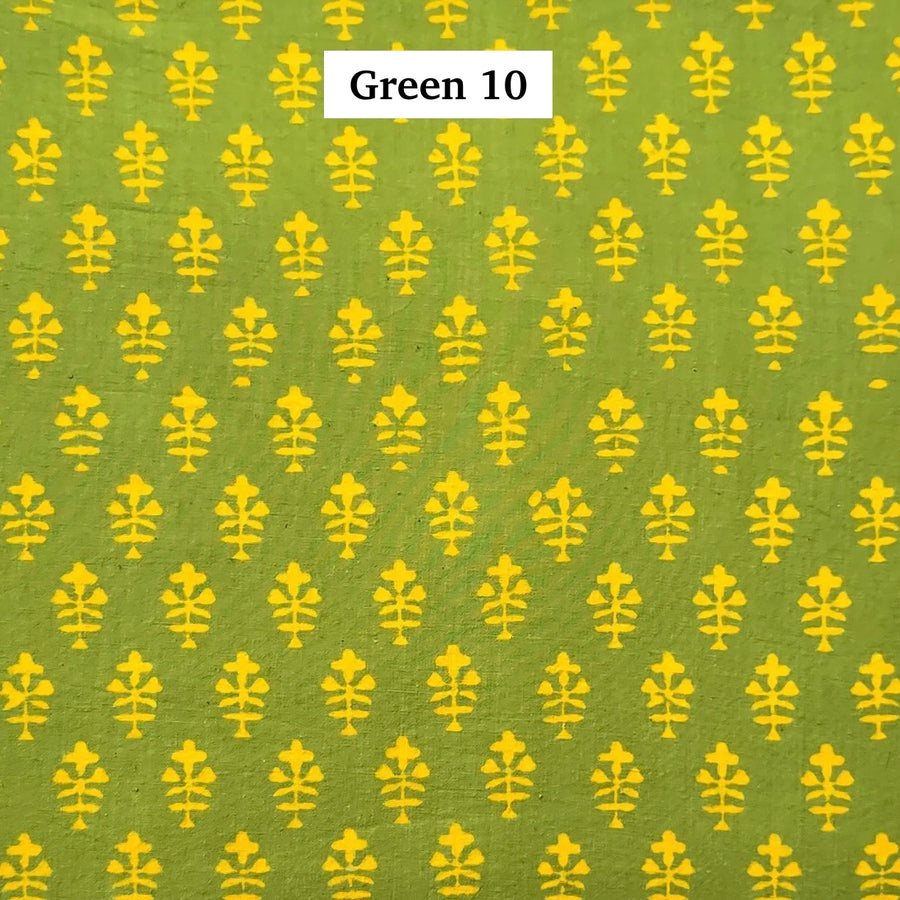 Block Printed Indian Cotton Fabric by the 1/4 Yard - Green 10