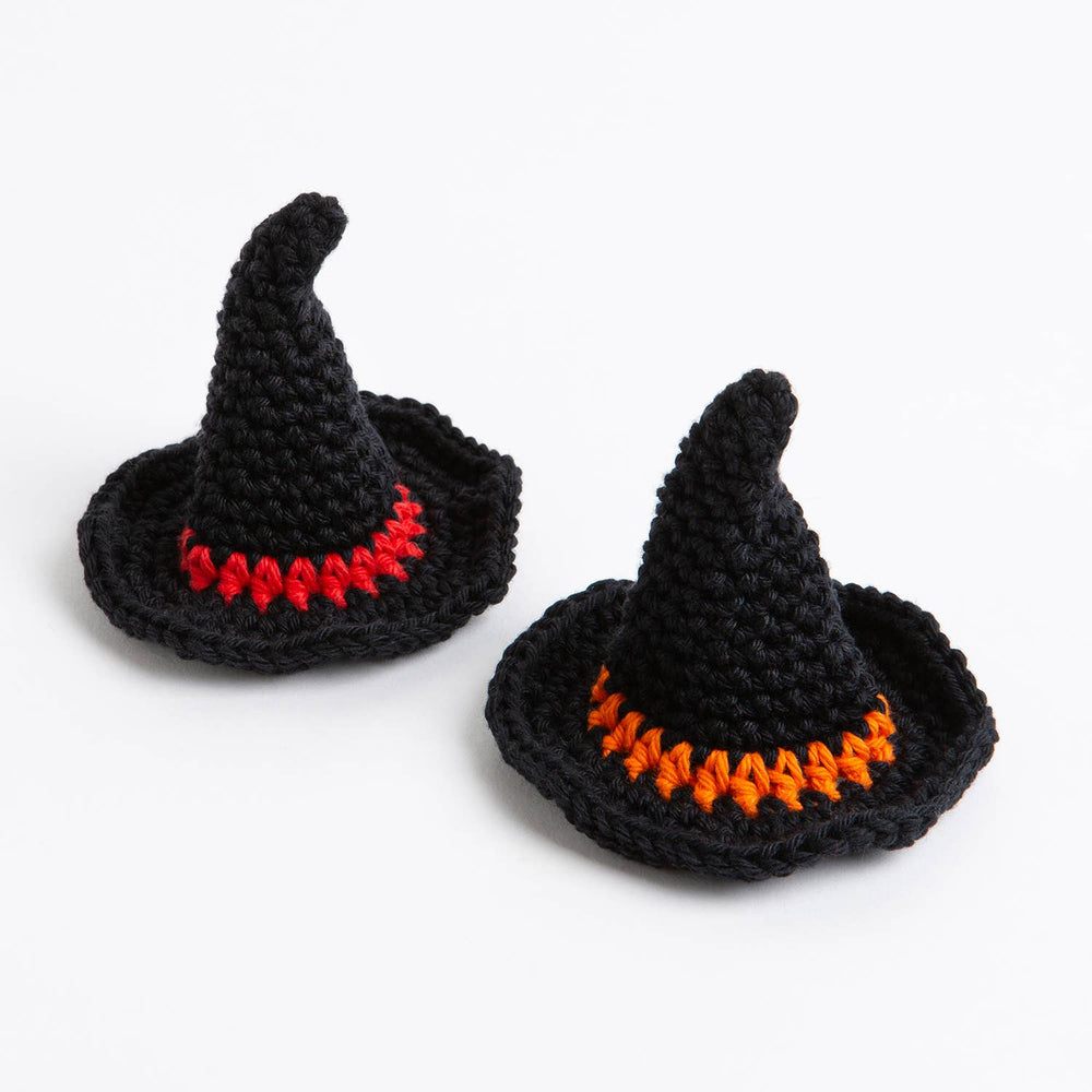 My Pocket Witch's Hat Crochet Kit. Spooky soiree in your diary? There is not need to turn to your spell-book, to conjure up some spine-tingling decorations. With our easy level crochet pattern, you will have two dinky witch's hats made up, before you can say Hocus Pocus!