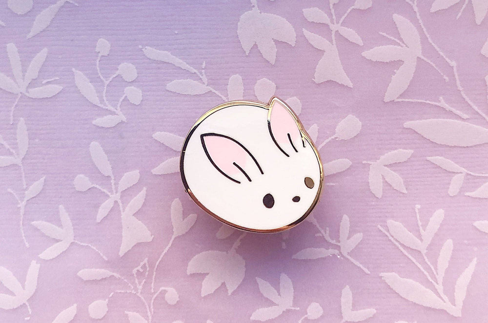 This adorable bunny bun enamel pin is dedicated to the delicious Japanese wagashi, some of which is in the shape of a cute rabbit. This little pin features a white and pink color palette in an utterly adorable 1" size set in gold-plated metal. This pin has a single post on the back. THE FEATURES - Highly polished gold-plated metal. - 1″ hard enamel pin. - Has one post on the back. - Features a white and pink color palette. - The bunny bun enamel pin illustration is based on my original artwork. - Stamped with "Alum & Ink" on the back. -