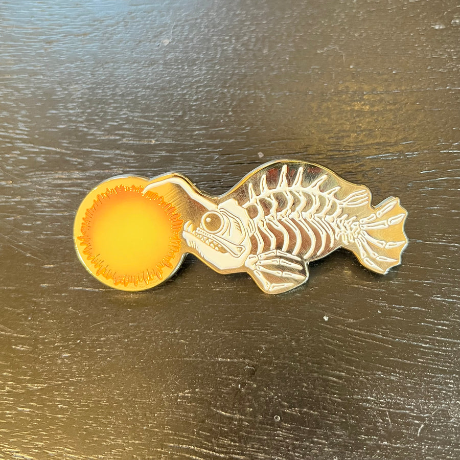 Enamel pins of our original angler fish design. Pins are approximately 3" long.