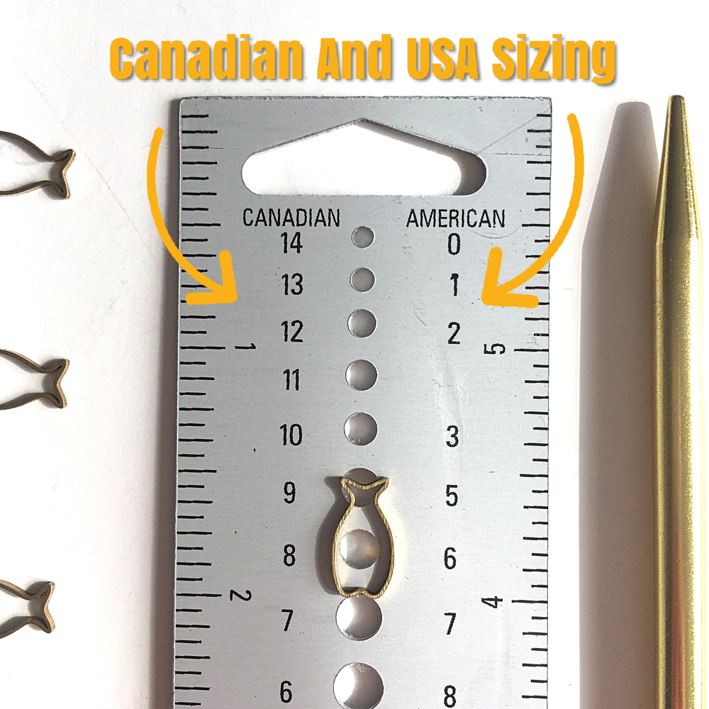 10 tiny and light weight raw brass, no snag stitch markers plus one removable boat are included in this fun fish pack for your next knitting project! See photo for sizes in both Canadian and American