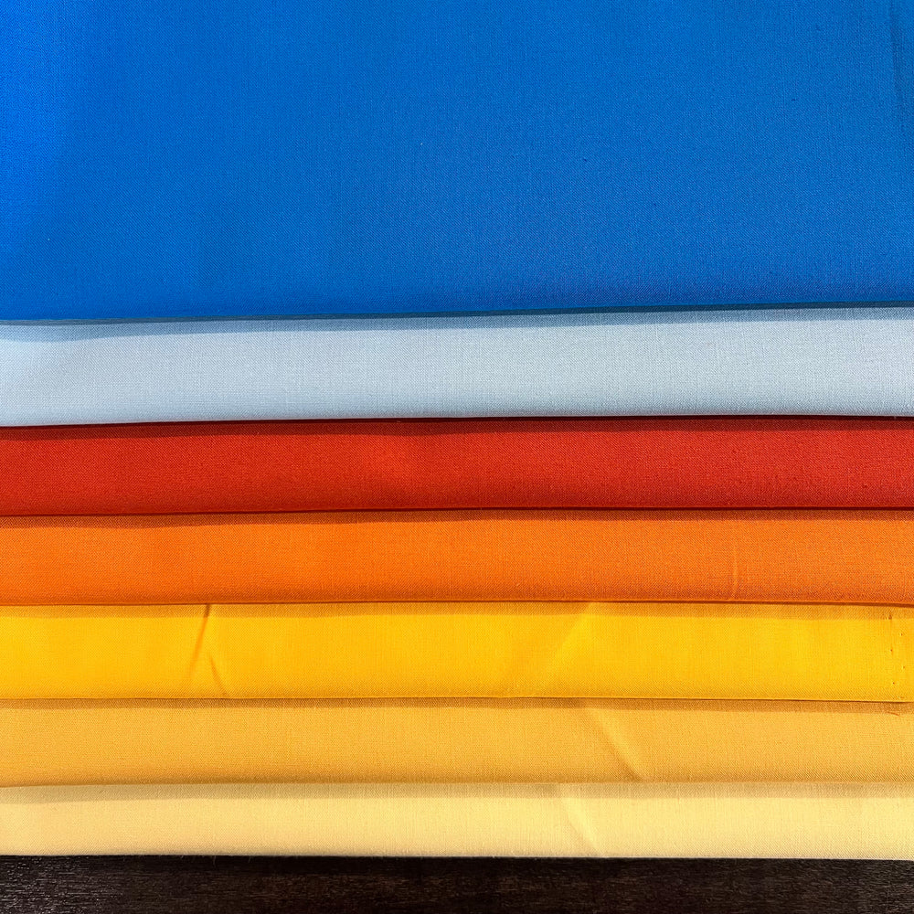 Uniquely curated bundles of Kona Cotton solids. Each bundle contains 7 different colors. Bundles are available in fat quarters, half yards, and one yard cuts.