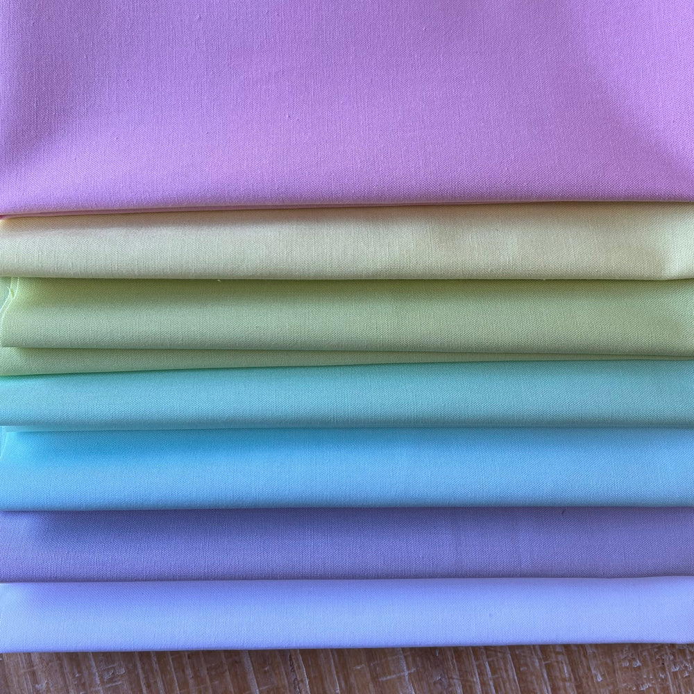 Uniquely curated bundles of Kona Cotton solids. Each bundle contains 7 different colors. Bundles are available in fat quarters, half yards, and one yard cuts.