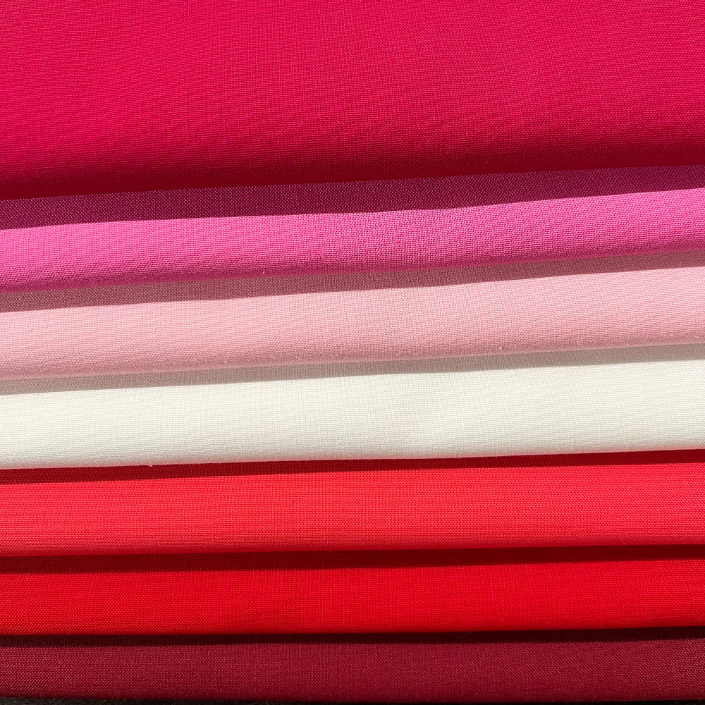 Uniquely curated bundles of Kona Cotton solids. Each bundle contains 7 different colors. Bundles are available in fat quarters, half yards, and one yard cuts.
