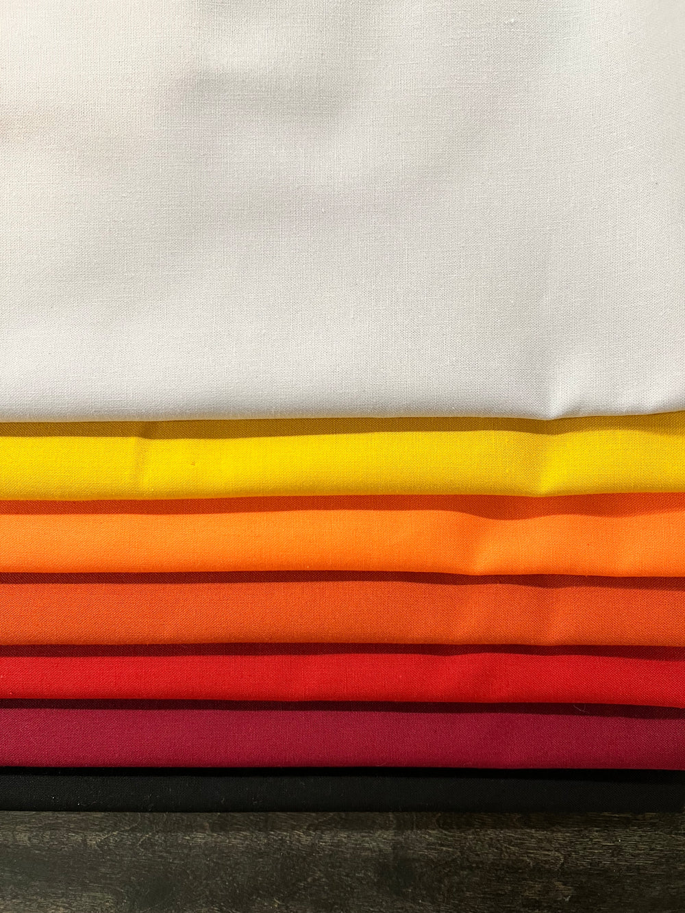 Uniquely curated bundles of Kona Cotton solids. Each bundle contains 7 different colors. Bundles are available in fat quarters, half yards, and one yard cuts.