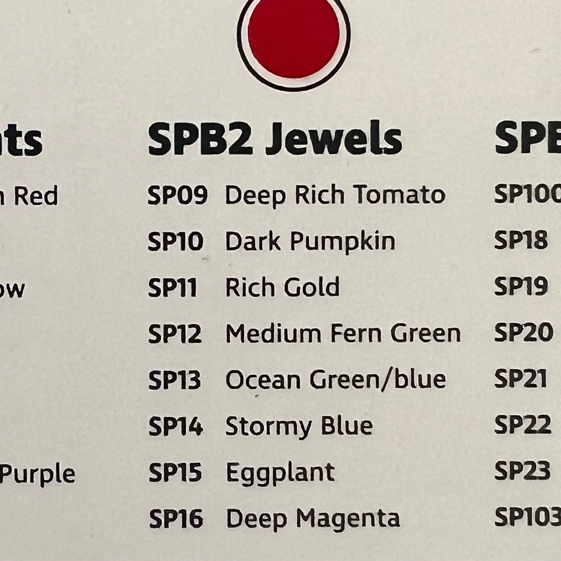 Jewels pack includes one spool of each of the following colors: SP09 Deep Rich Tomato, SP10 Dark Pumpkin, SP11 Rich Gold, SP12 Medium Fern Green, SP13 Ocean Green/Blue, SP14 Stormy Blue, SP15 Eggplant, SP16 Deep Magenta