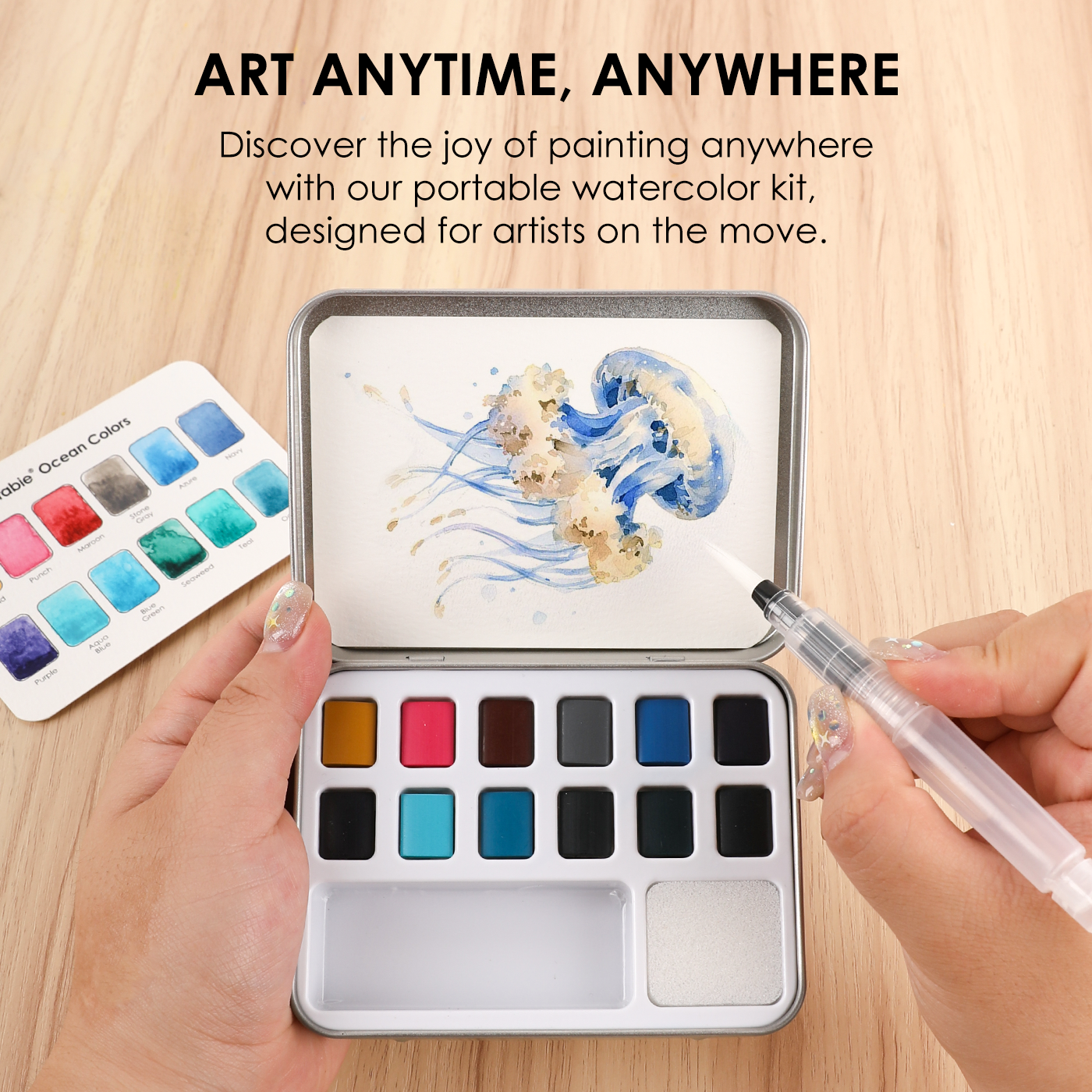 Experience the vibrant magic of the deep sea with the Grabie Watercolor Pocket Set, Ocean Colors. This all-in-one watercolor set features a curated palette of 12 unique shades that capture the diverse and colorful beauty of the underwater world. * A UNIQUE PALETTE FOR THE OCEAN'S MOST VIBRANT LIFE - This isn't your average blue palette—it's a collection designed to bring the ocean's true vibrancy to life. The palette goes beyond serene blues, incorporating vibrant reds, bright yellows, and calming earth tones. This unique combination is perfect for painting the full spectrum of a coral reef and the rich, varied hues of marine life. * HIGH-QUALITY FOR ALL YOUR CREATIONS - Crafted with high-quality pigments, these watercolors dissolve quickly and blend effortlessly, providing rich and consistent results for all your creations. The superior color payoff ensures your artwork will be vibrant and true to life, whether you're working on delicate details or broad, sweeping washes.