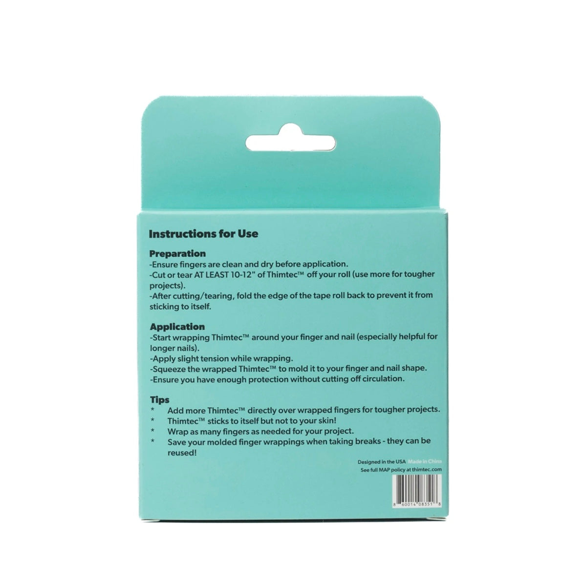 Latex Free. Customizable. Tear or cut off at least 8-10 inches or more of Thimble Tape, depending on the amount of protection you need. Wrap tightly and then squeeze to mold around your finger for a perfect and comfortable fit that you can remove and re-use until it wears down.