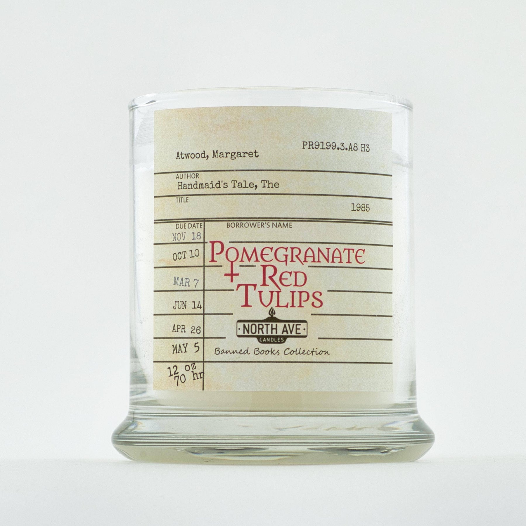 Inspired by Margaret Atwood's dystopian feminist novel The Handmaid's Tale, Pomegranate + Red Tulips is a sophisticated blend of pomegranate, blood orange, and tart red currant highlighted by the scents of thyme and Serena's red tulips.