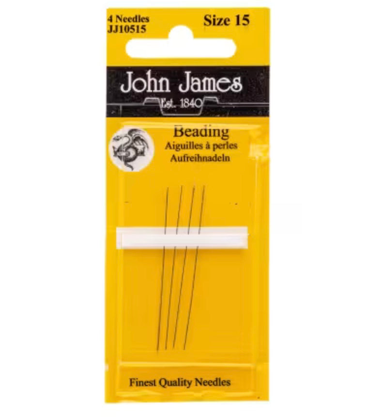 John James Beading #15 - 4 needles per card Beading sewing needles are very fine, long straight needles with long eyes made from the finest steel wire and are expertly crafted.