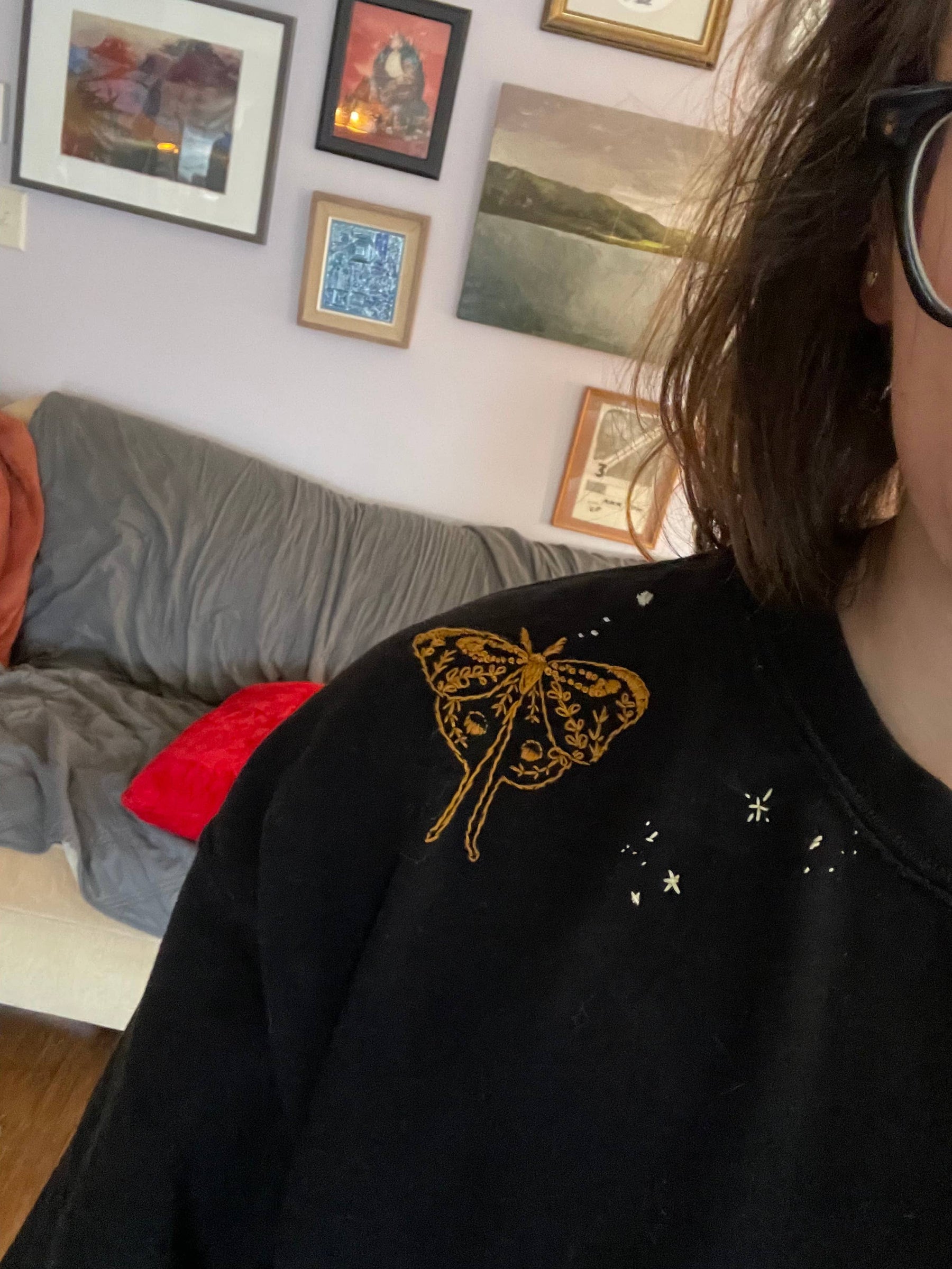 • 4 moth peel, stick, and stitch designs