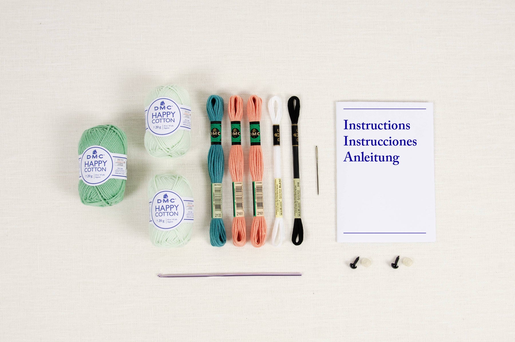 Dive into a sea of calm with this convenient kit. Easy to pack, it’s an ideal holiday make. Just as crafting calms the mind, being near water or simply imagining it has powerful positive effects. The kit contains everything you need including three 20g balls of Happy Cotton, three skeins of Soft Cotton, a 3mm crochet hook and a needle. Add the details with the enclosed safety eyes and thread.