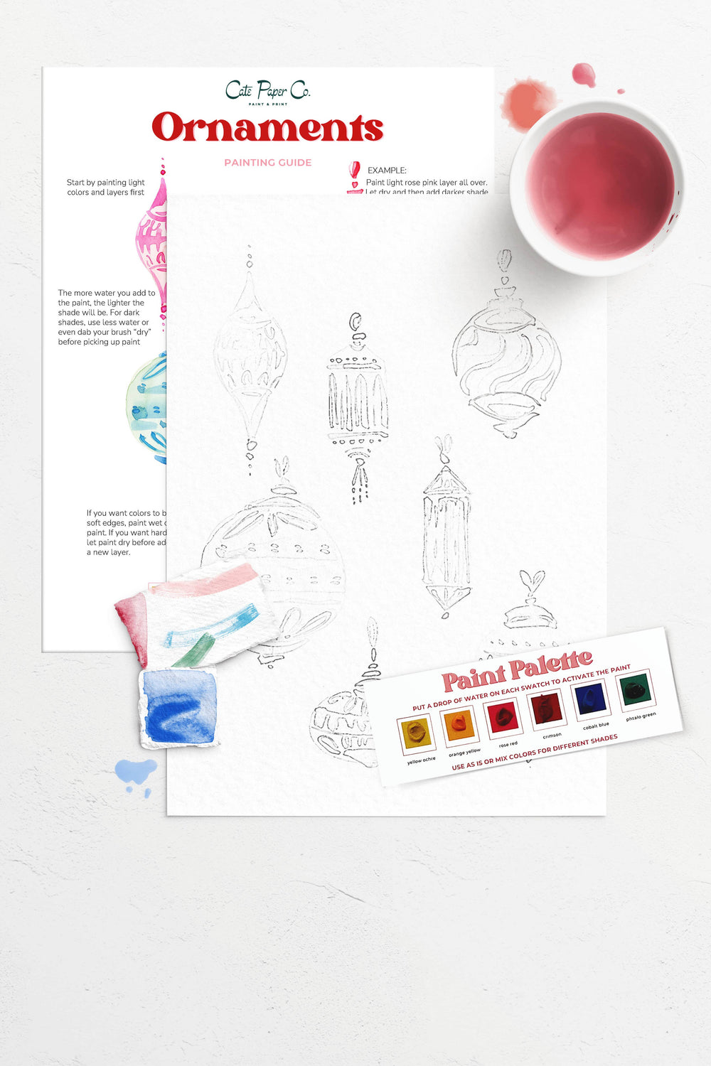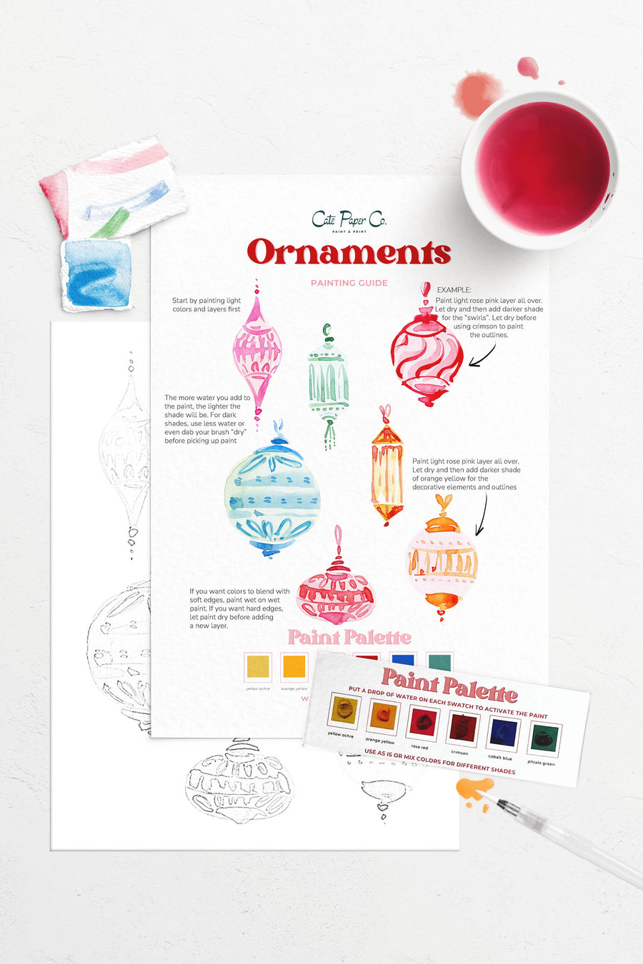 Paint your own watercolor ornaments with this outline and paints. This kit is compact and portable- everything packaged together in a complete packet. Just add water to the included water brush and you can paint anywhere! No prior experience necessary, beginner friendly.