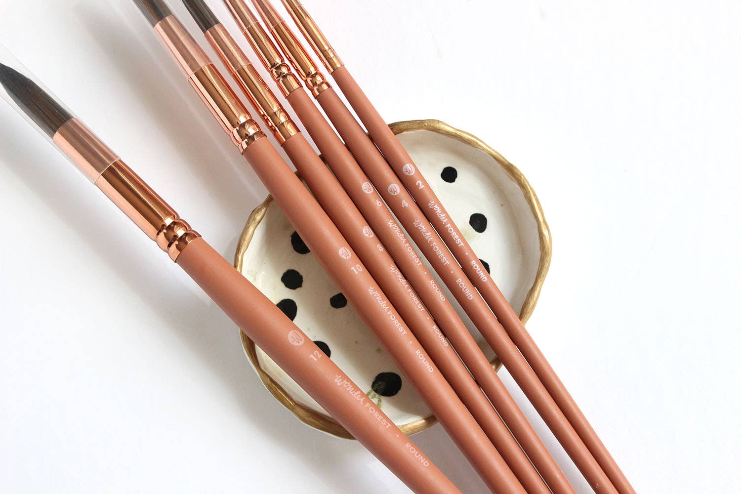 - Ferrule: Brass with a rose gold finish.