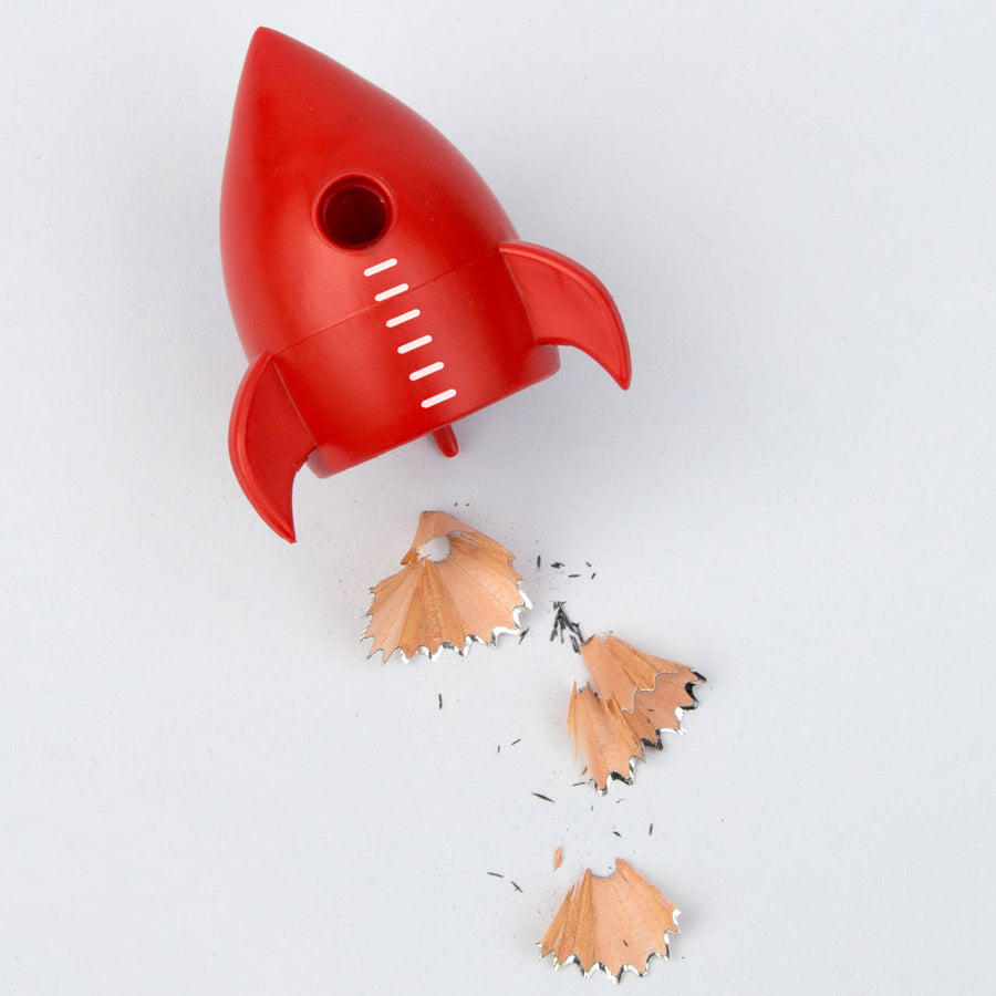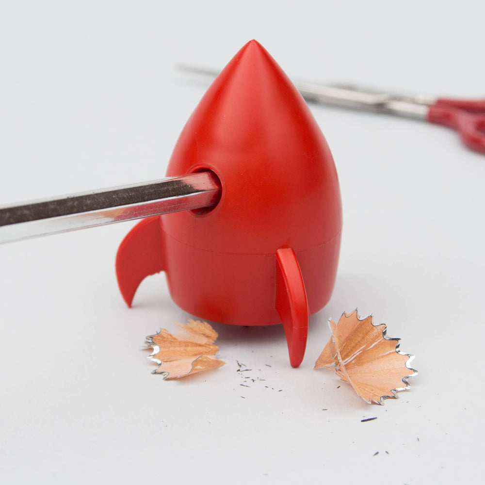Bright red and ready for lift off, this free-standing rocket-shaped pencil sharpener will make a welcome addition to any desk or pencil case. Made from sustainable bamboo fiber with a moon and astronaut tag.