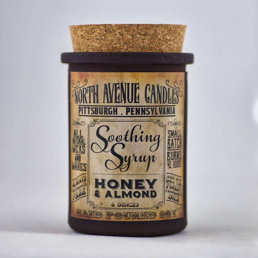 The Soothing Syrup candle is a blend of sweet golden honey combined with the nutty, slightly bitter scent of raw almond.