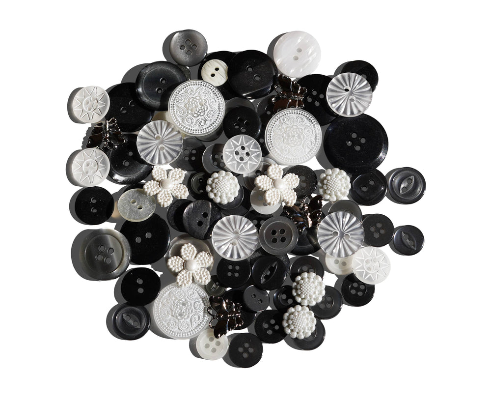 The Neutrality Treasure Box from Buttons Galore and More contains a variety of fancy designer buttons for your sewing and craft projects. These beautiful, pearlized finished buttons are offered in a crystal clear acrylic flower shaped box and will include various sizes and shapes of buttons. The flower shaped box, with seven different compartments can be used as an embellishment storage container after all the buttons are used on your creations. Includes approximately 100 buttons